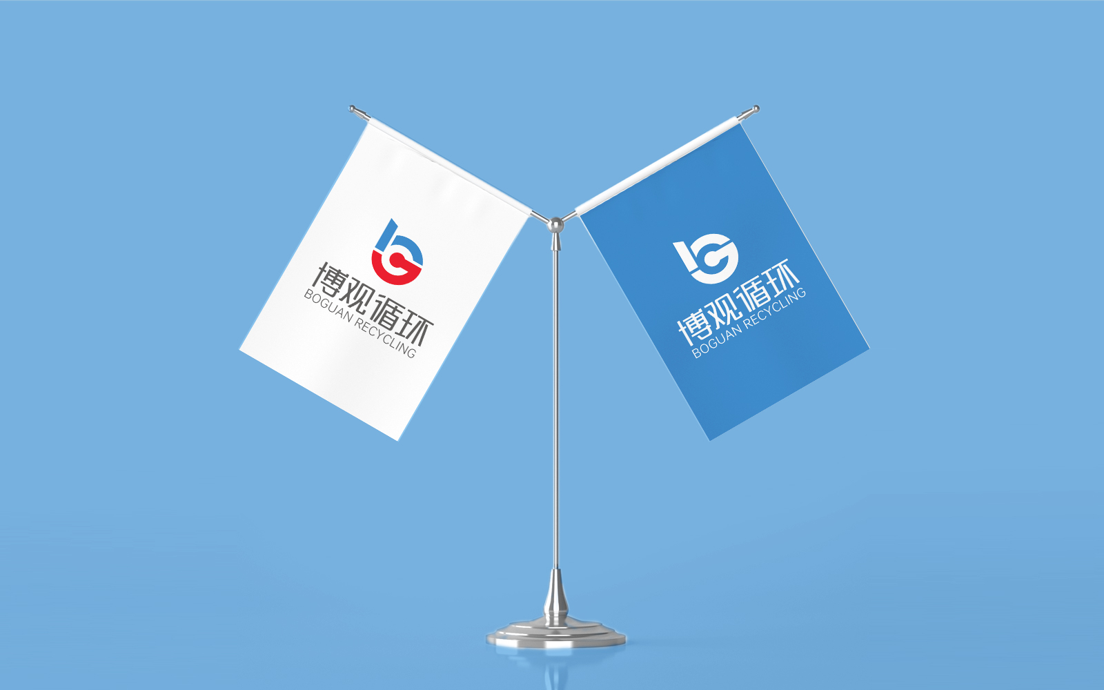 標志以圖形部分由品牌名稱“博觀”首字母“bg”巧妙結合,以藍綠色系為主,構成完整的logo圖形部分。logo部分用“\g”科技感的尾跡巧妙的變形組成電池板塊形狀的標志圖形,著重強調新能源汽車廢舊動力蓄電池回收及梯次利用行業屬性,G變形結合綠葉強調綠色、生命力、環保。標志組合在字體上加上了閃電標志符號,以此體現新能源電池能源標志,科技感的尾跡寓意著生命不息,循環不止。標志以冷色系為主,冷色系具有沉穩的特性,具有理智、準確的意象,強調科技、效率的平臺/企業形象,也代表品質與專業,寓意著企業對新能源汽車廢舊動力蓄電池回收及梯次利用的專研精神。