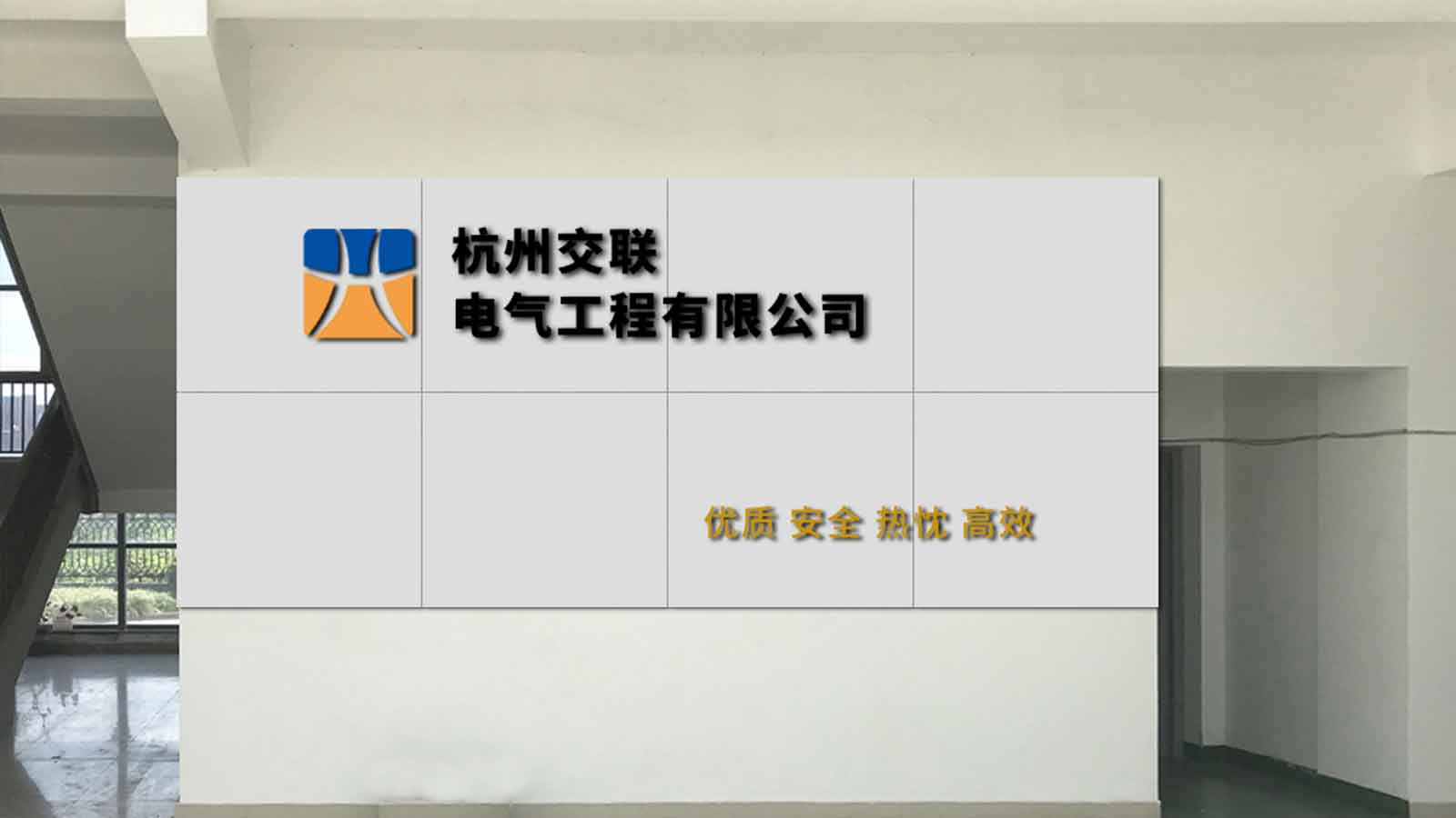 交聯電氣辦公環境改變,分為電氣和投資兩處辦公室,委托石特為他們做了簡潔的形象墻設計。
