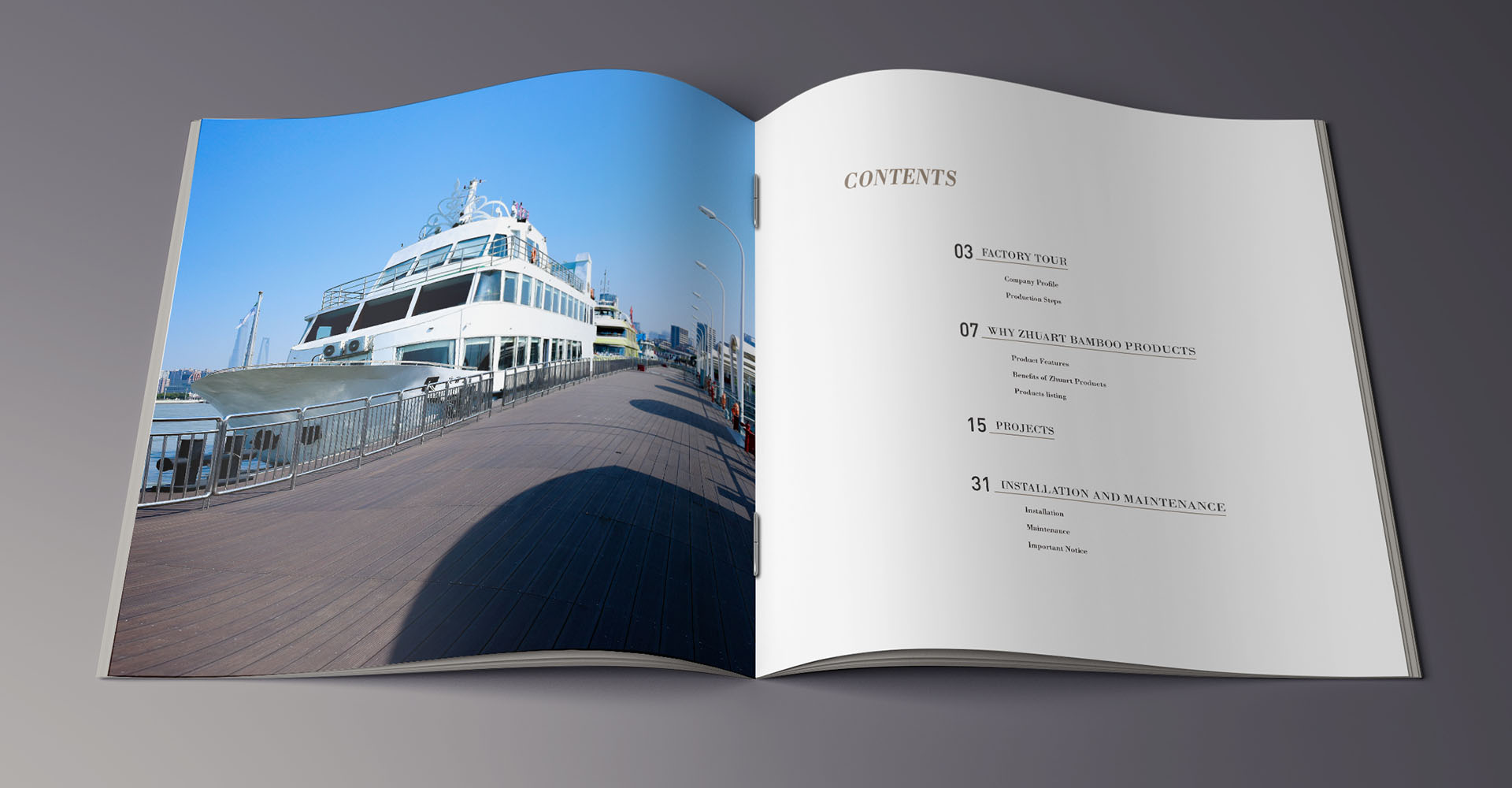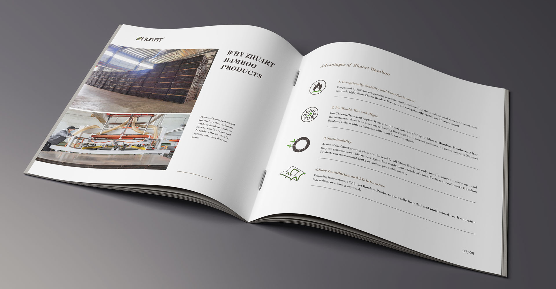浙江莊禾竹業科技有限公司是一家集研發、生產、銷售于一體的科技型企業,公司自有2家新型戶外景觀竹材生產工廠生產銷售戶外竹材,公司委托石特設計宣傳冊。