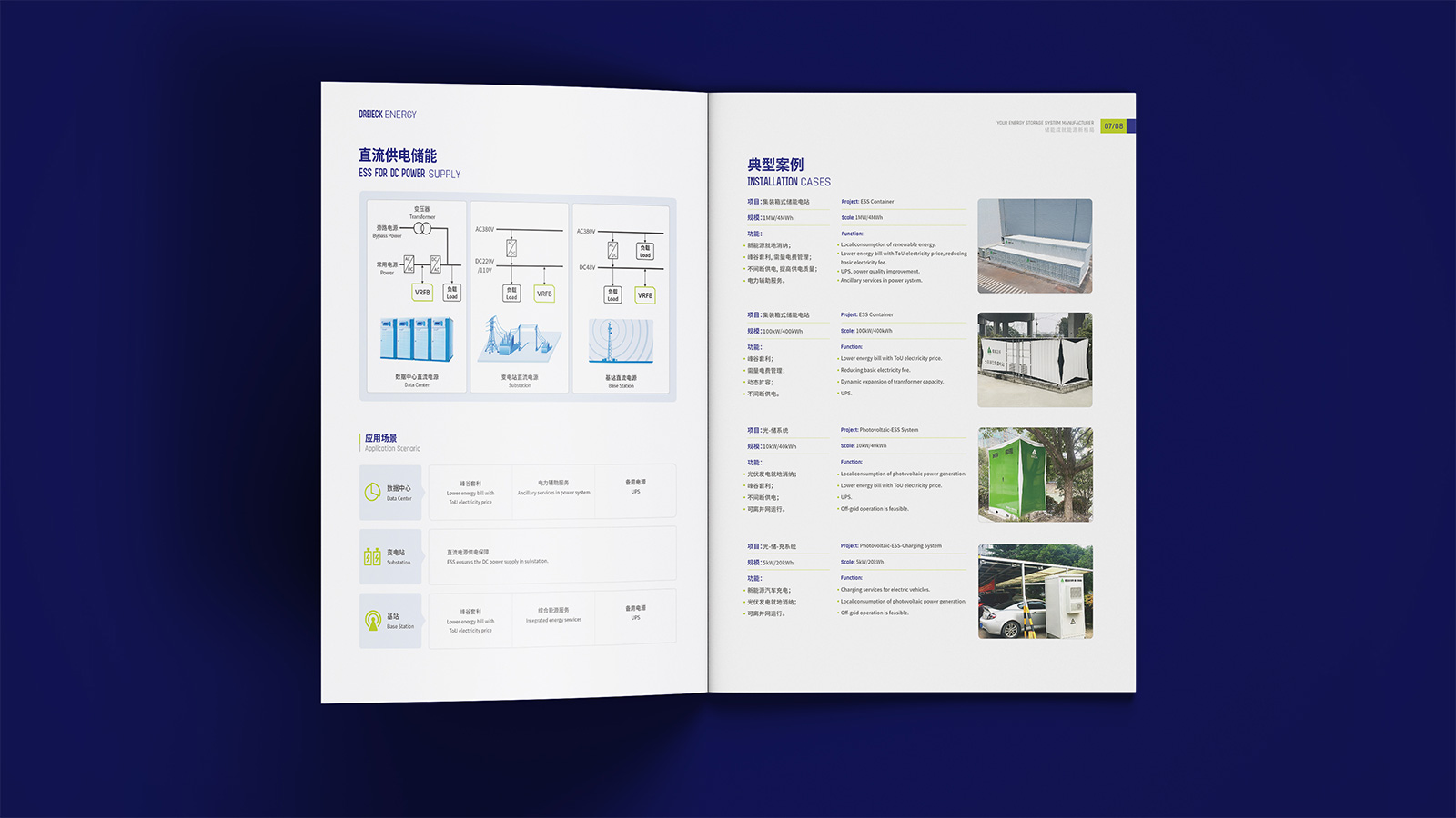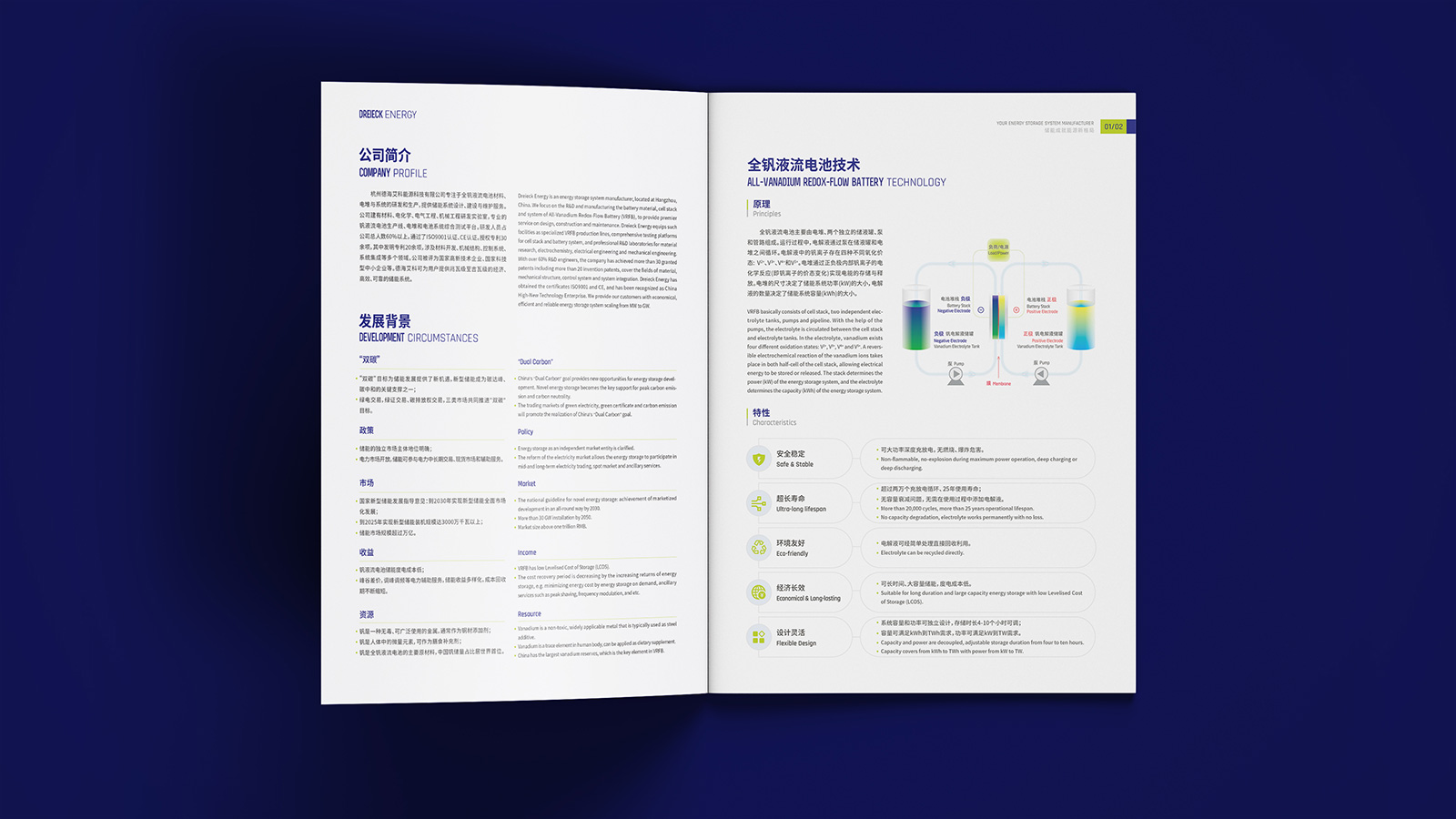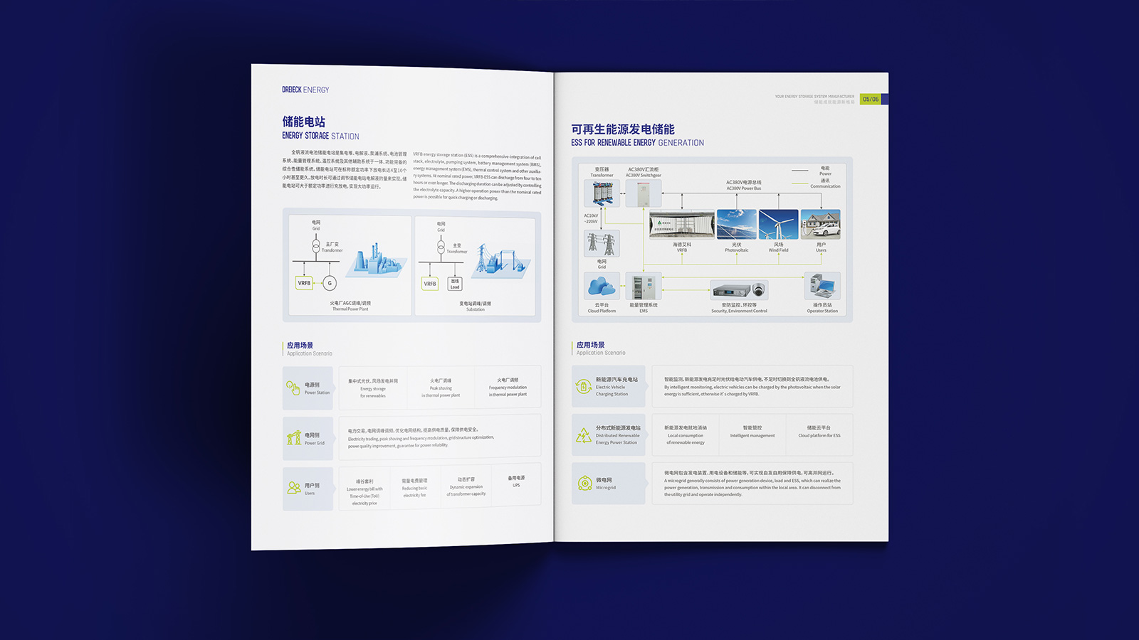 企業(yè)的畫冊設(shè)計(jì)要站在品牌建設(shè)的高度,不僅需要展現(xiàn)企業(yè)的品牌形象,還需要設(shè)計(jì)出品牌的個性來,基于此,在此次的畫冊設(shè)計(jì)中,石特提出了新的想法。封面封底以淡綠色和深藍(lán)色為主,帶給人一種嚴(yán)謹(jǐn)務(wù)實(shí)、值得信任的感覺;內(nèi)容上首先以圖文結(jié)合的形式先對企業(yè)的基本情況進(jìn)行介紹,然后闡述了全釩液流電池技術(shù)的原理以及應(yīng)用場景,并對儲能電站的相關(guān)知識進(jìn)行了科普,最后以典型案例、產(chǎn)品系列、資質(zhì)認(rèn)證的介紹為結(jié)尾,該畫冊簡潔美觀、主次分明,德海艾科人嚴(yán)謹(jǐn)務(wù)實(shí)的工作態(tài)度和創(chuàng)新的精神得到了系統(tǒng)且充分的展示。