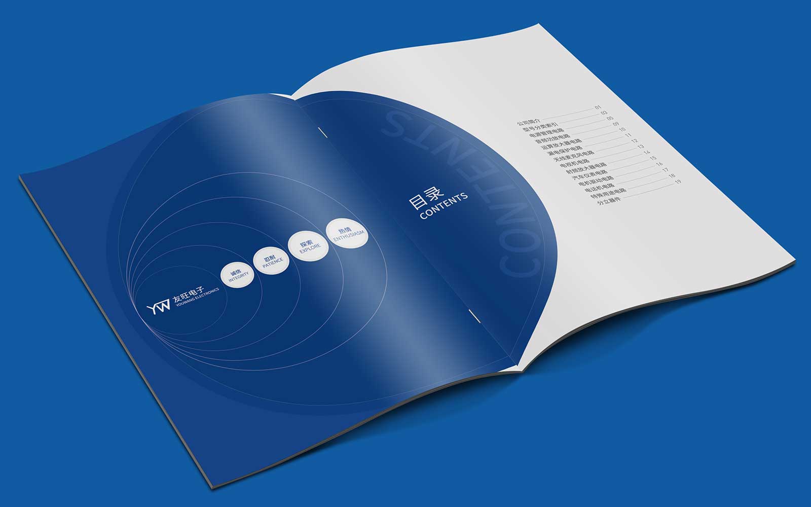 產(chǎn)品畫冊亮點在封面設計,公司LOGO進行設計圖片嵌入,畫面突出,封面設計具有數(shù)字科技感,與公司屬性相貼合。
