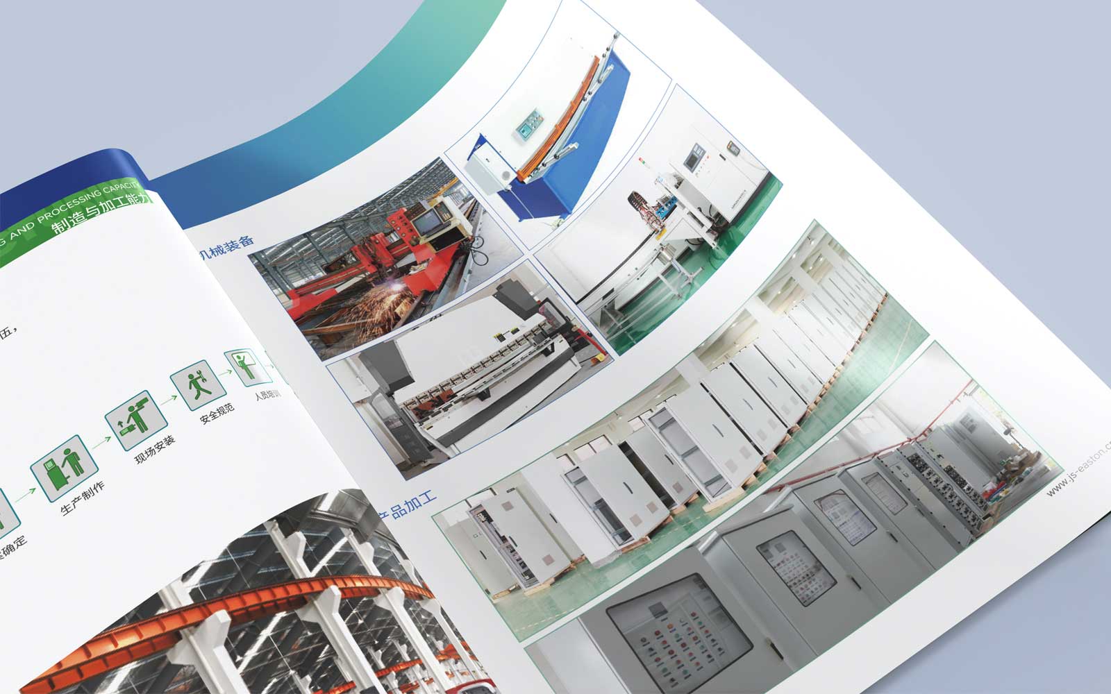 機電工程公司的產品屬于冷冰冰的機器,企業樣本如果想突破這樣的感覺,那么設計中就需要構思一些元素,使企業樣本設計不至于像一塊板磚。