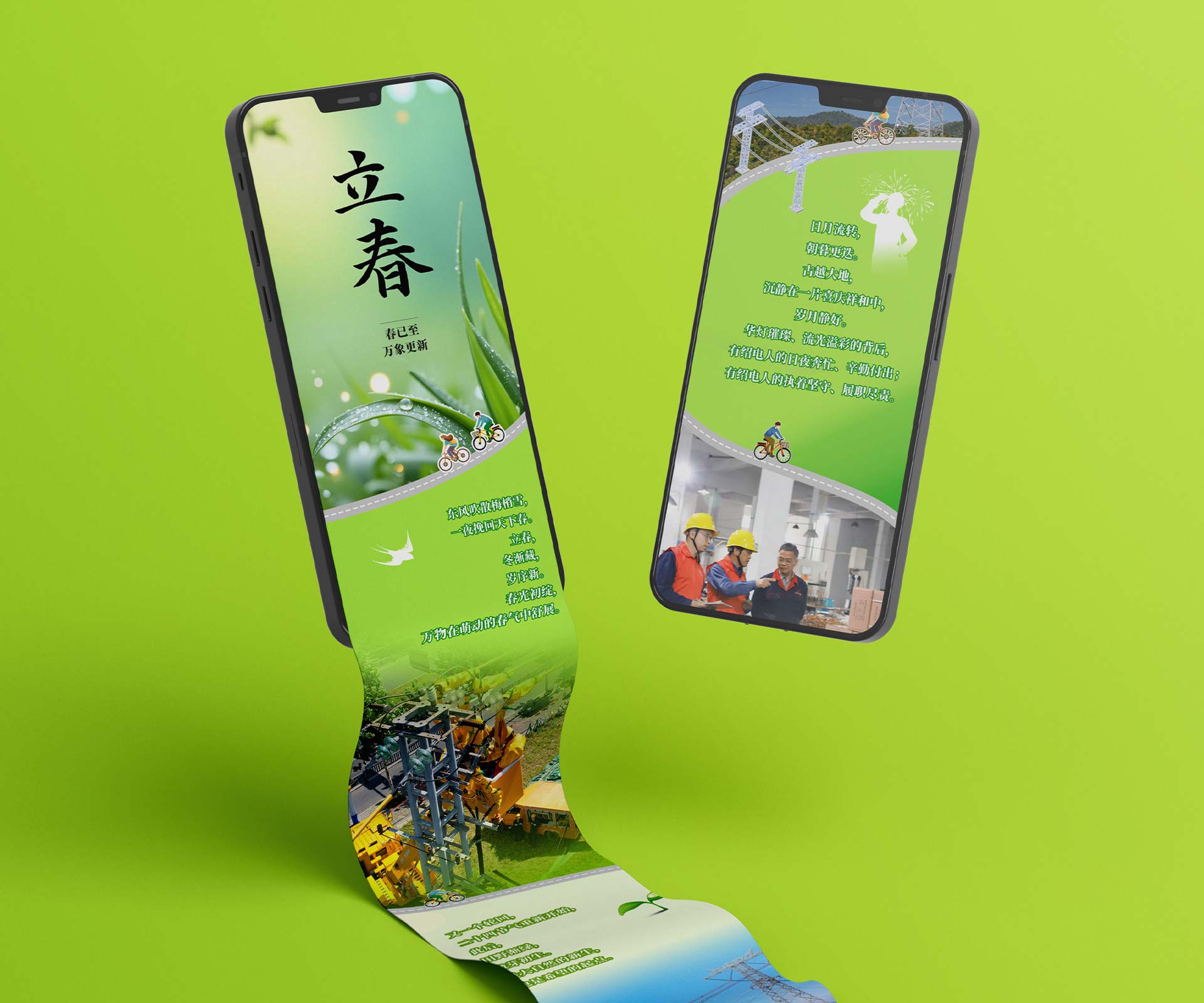 杭州石特廣告策劃有限公司作為一家在品牌全案和設(shè)計方向深耕多年、頗具影響力的公司,在 2025 年立春之際,接到為國網(wǎng)浙江省電力公司設(shè)計公眾號長圖的任務(wù)。目的是通過生動且富有創(chuàng)意的長圖設(shè)計,將立春這一傳統(tǒng)節(jié)氣與國網(wǎng)浙江電力的服務(wù)理念、業(yè)務(wù)特色相融合,在公眾號平臺上向廣大用戶傳遞溫暖的節(jié)氣祝福,同時展示企業(yè)形象與人文關(guān)懷。