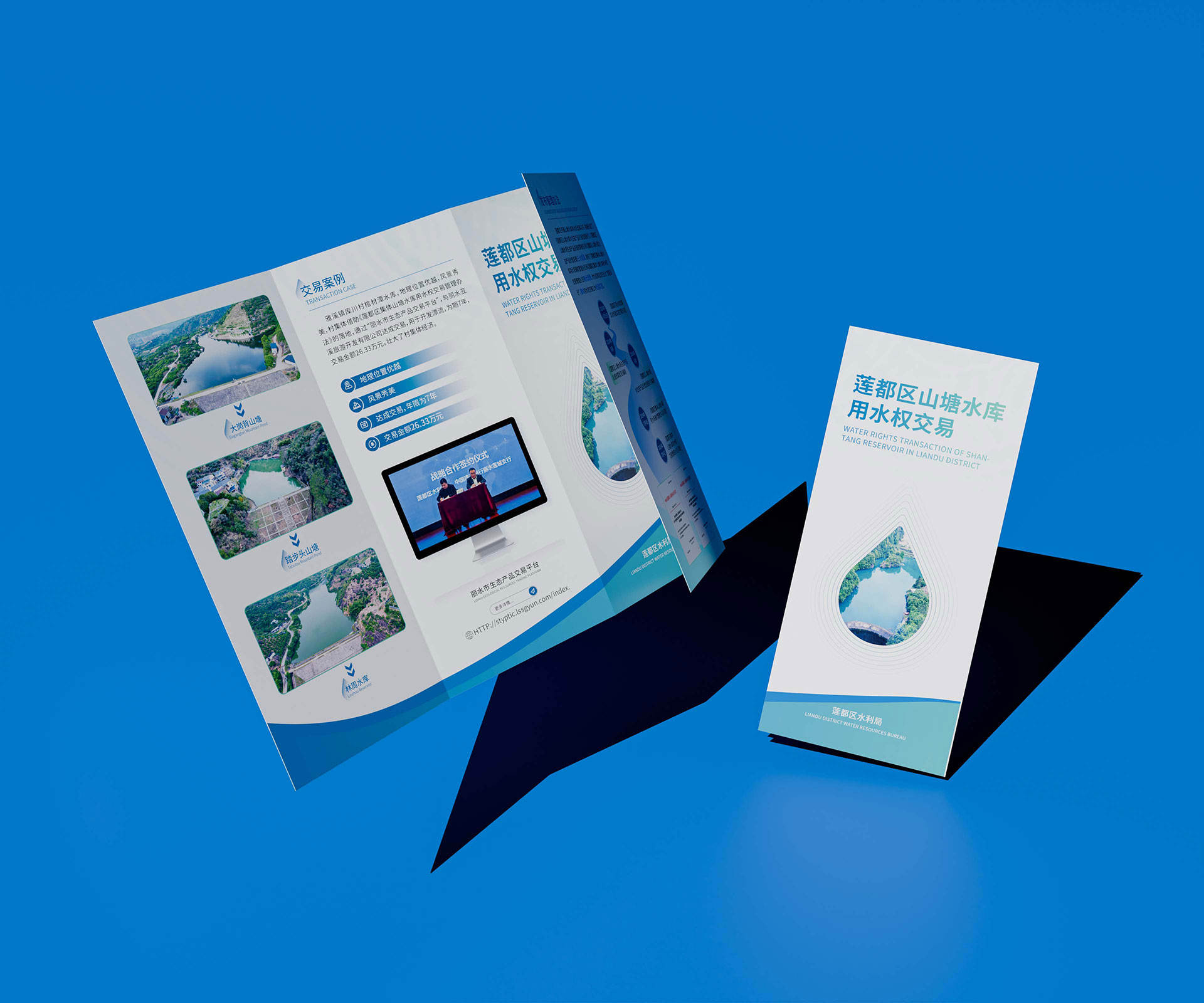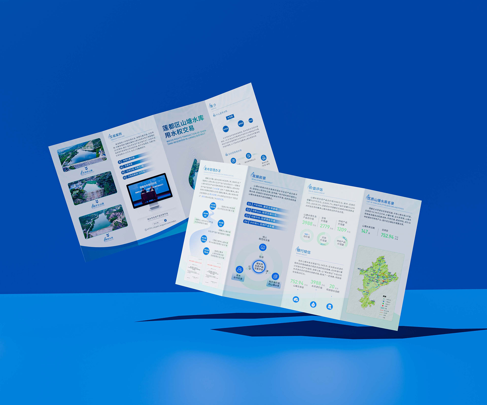 本四折頁設(shè)計(jì)作為生態(tài)產(chǎn)品交易的首張水利工程名片,助力庫坑山塘項(xiàng)目在麗水生態(tài)產(chǎn)品交易平臺獲得超1000次瀏覽,吸引15家機(jī)構(gòu)參與競價。其創(chuàng)新價值體現(xiàn)在三方面: