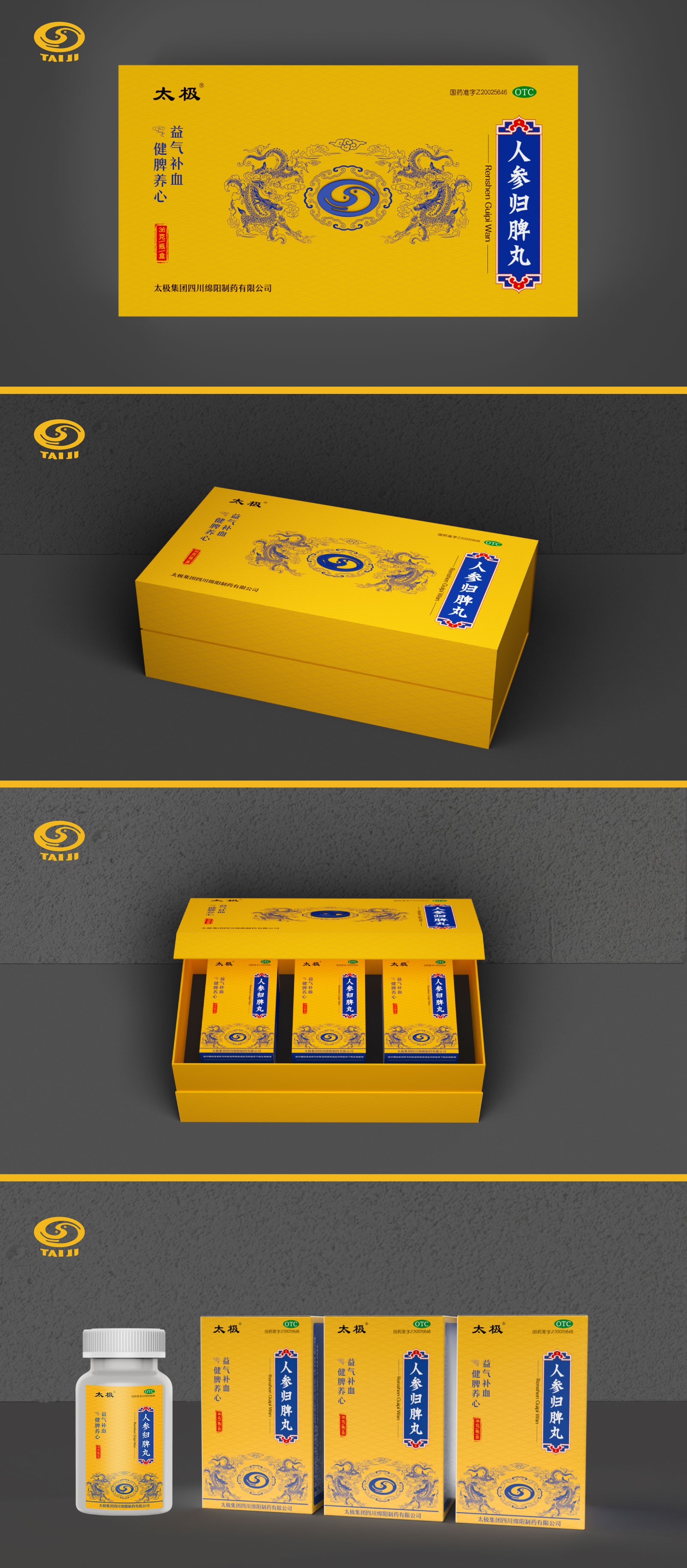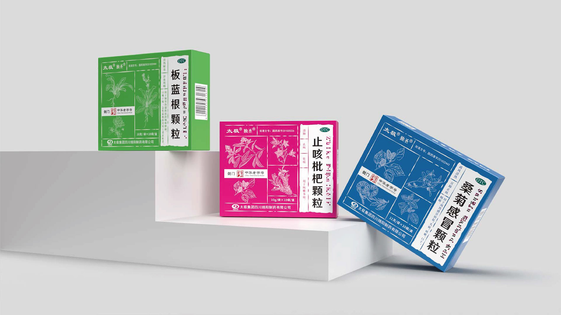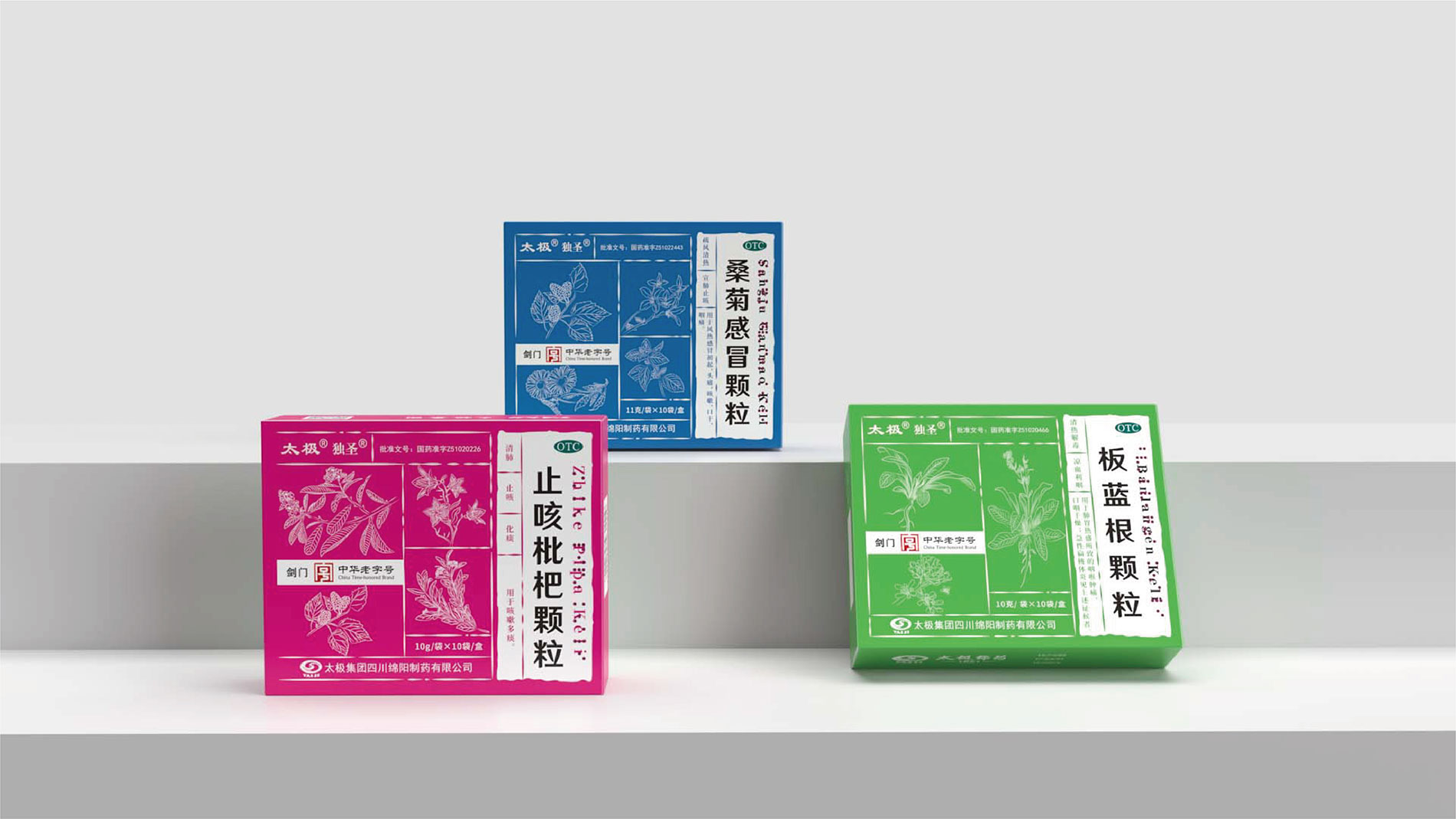 系列化規(guī)劃: 打破原有產(chǎn)品“各自為戰(zhàn)”的視覺混亂,建立統(tǒng)一的品牌視覺基因。通過色彩體系、符號元素、版式規(guī)范的標準化,將顆粒系列、丸劑系列等不同劑型的產(chǎn)品進行家族化整合,強化“太極綿陽制藥”的整體品牌印象,提升終端陳列的視覺沖擊力。