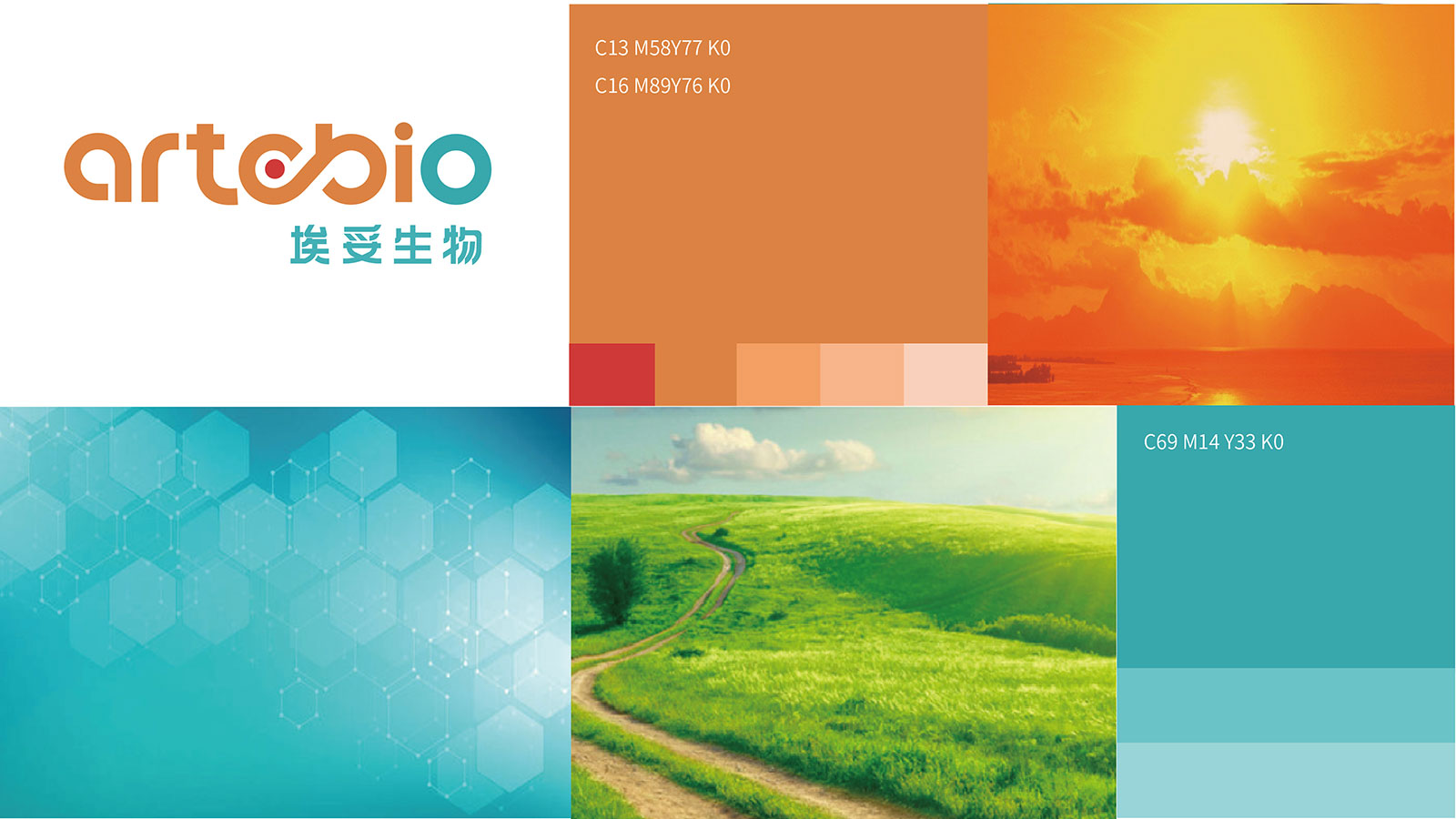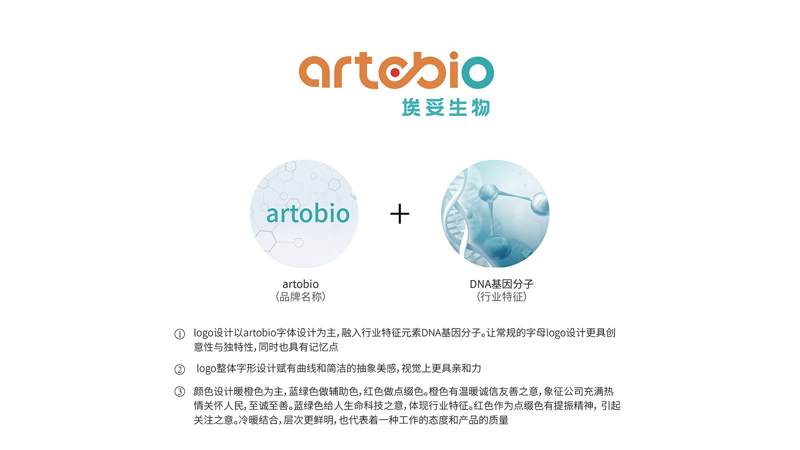 logo設(shè)計(jì)以artobio字體設(shè)計(jì)為主,融入行業(yè)特征元素DNA基因分子,讓常規(guī)的字母logo設(shè)計(jì)更具創(chuàng)意性與獨(dú)特性,同時(shí)也具有記憶點(diǎn)。logo整體字形設(shè)計(jì)賦有曲線和簡(jiǎn)潔的抽象美感,視覺(jué)上更具親和力,顏色設(shè)計(jì)?色為主,藍(lán)綠色做輔助色,紅色做點(diǎn)綴色。橙色有溫?誠(chéng)信友善之意,象征公司充滿(mǎn)熱情關(guān)懷人民,至誠(chéng)至善。藍(lán)綠色給人生命科技之意,體現(xiàn)行業(yè)特征。