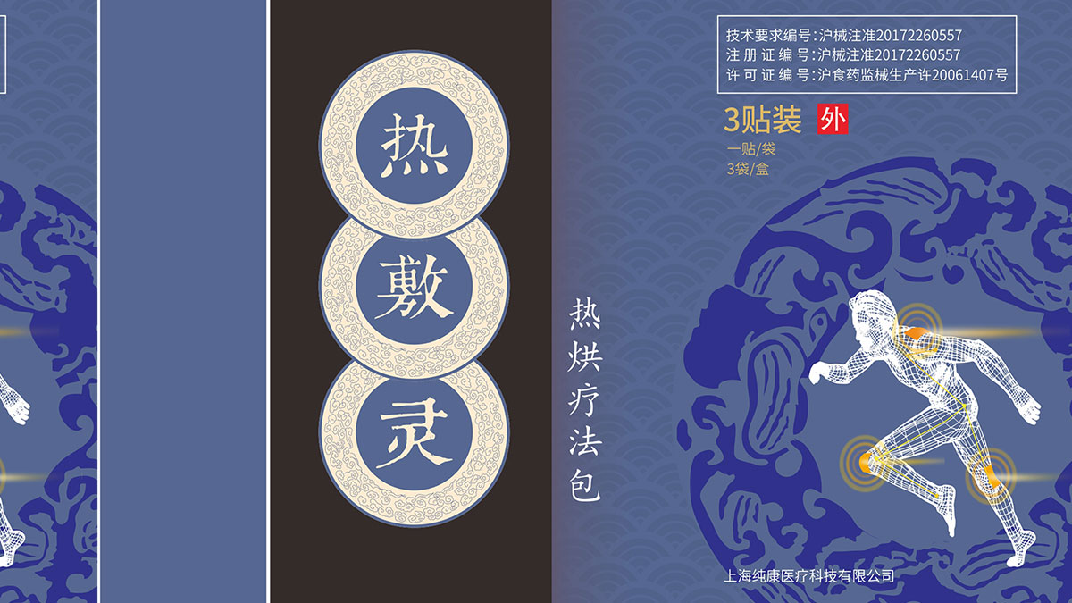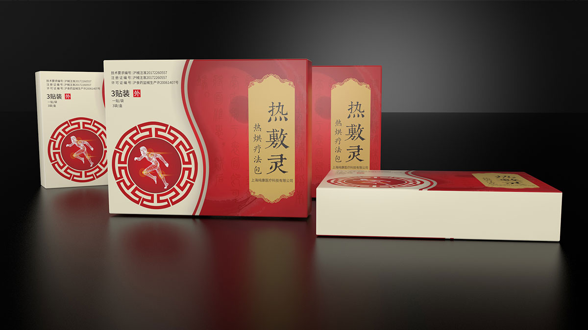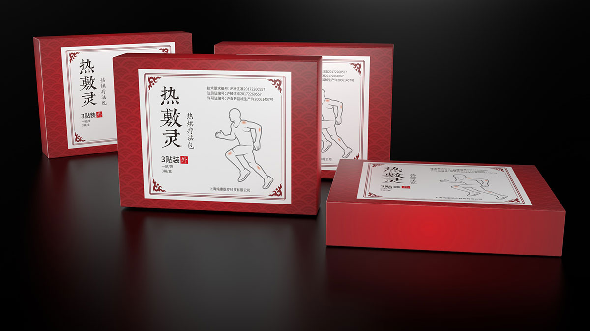 本款系列藥為貼膏,因此設計為中式風格。本款設計采用太極元素,配以篆體背景,充分的將傳統(tǒng)元素運用到這款包裝中。圖案選擇上也體現了該產品的功能性,讓人一眼就知道該產品的用途。