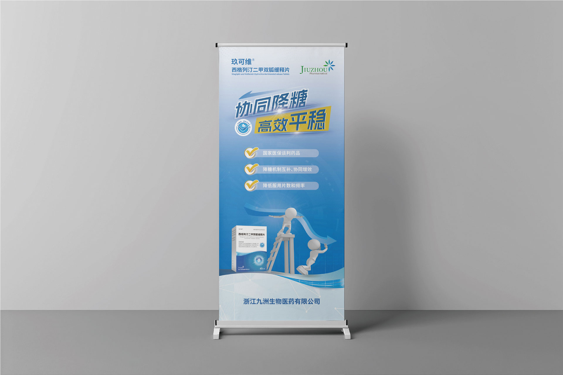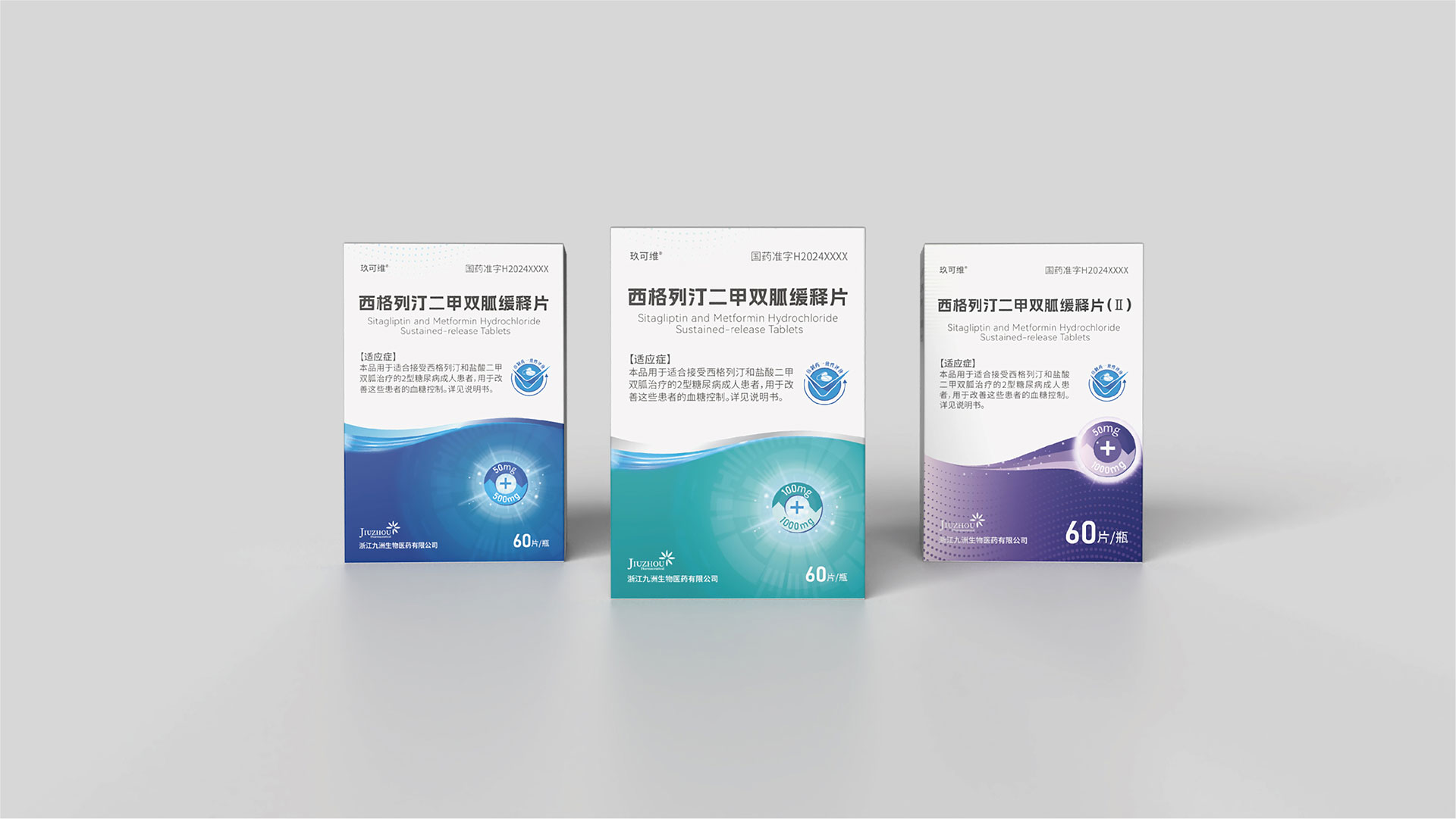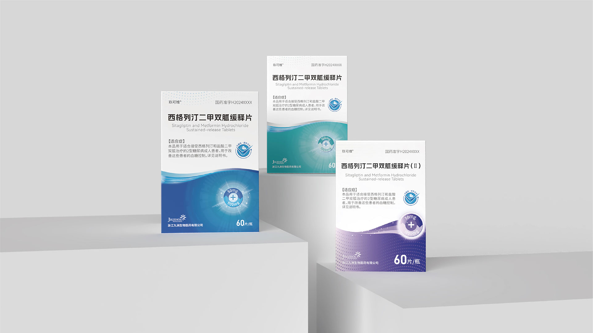 浙江九洲生物醫藥有限公司是一家專注于糖尿病治療領域的創新藥企,其核心產品西格列汀二甲雙胍緩釋片(II)致力于為2型糖尿病患者提供更安全、便捷的治療方案。石特大健康團隊受邀為其設計藥品包裝,旨在通過專業設計提升產品辨識度、傳遞品牌價值,并滿足藥品包裝的合規性與功能性需求。