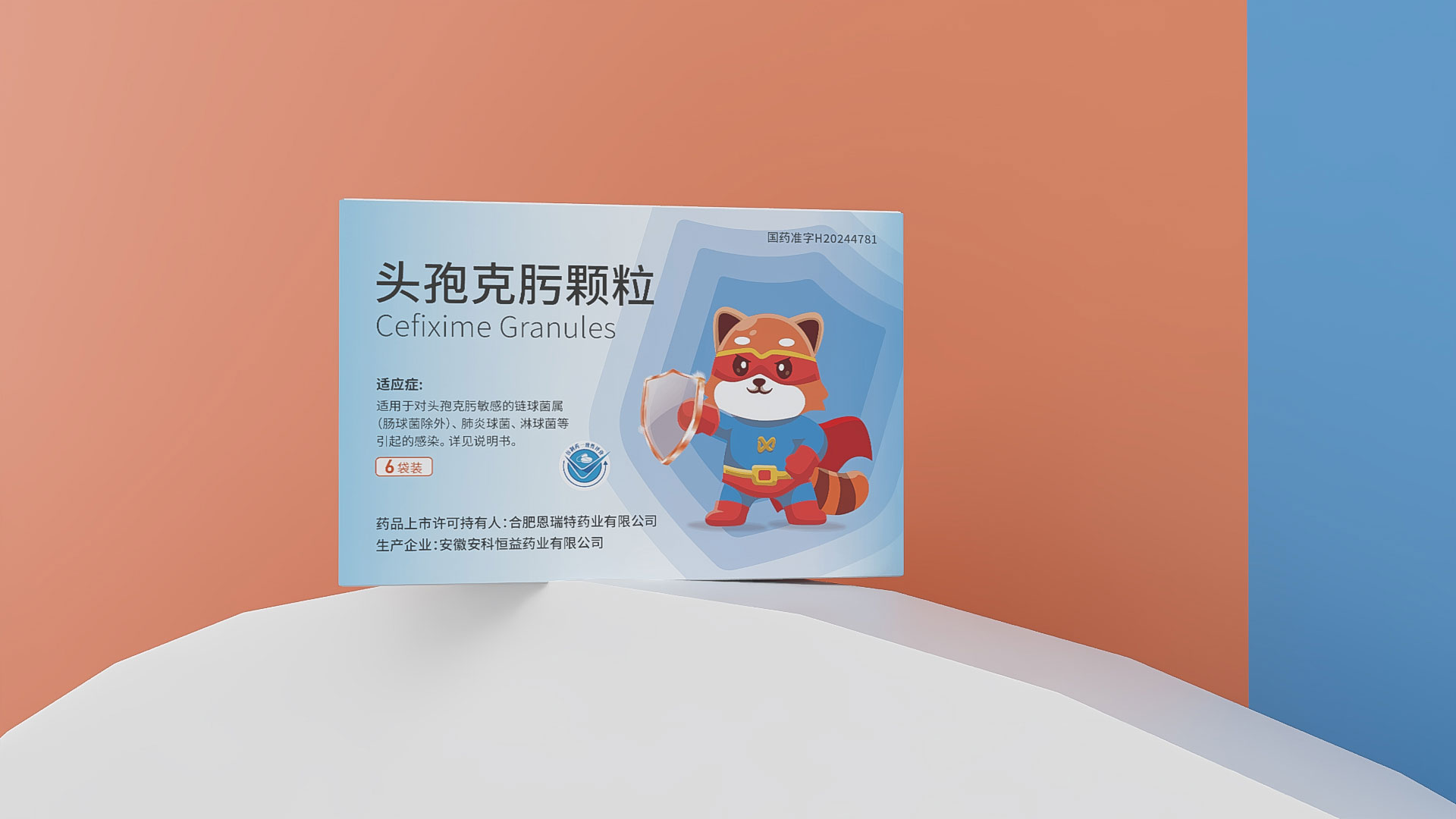 合肥恩瑞特藥業頭孢克肟顆粒兒童用藥包裝設計