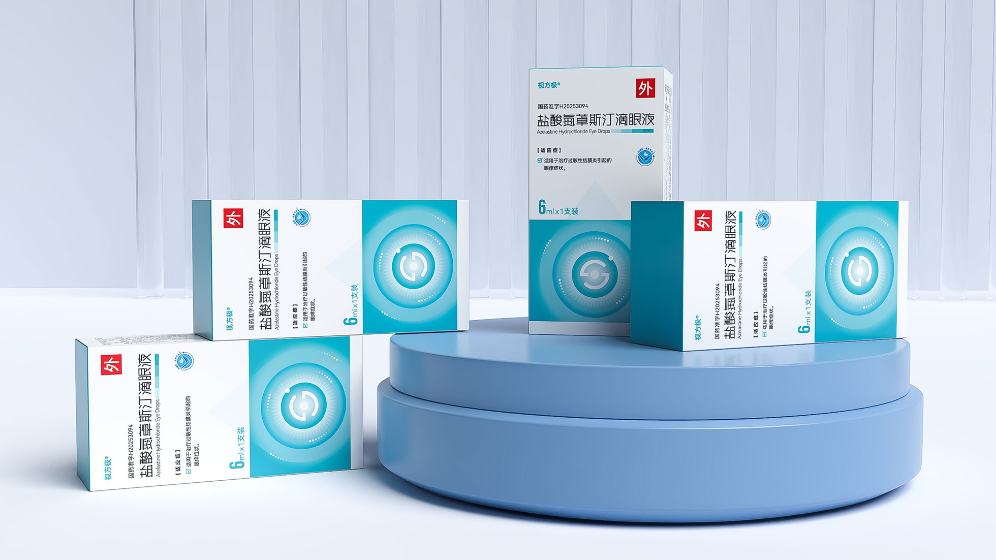 本項目是石特大健康為浙江視方極醫藥科技有限公司的核心產品——鹽酸氮?斯汀滴眼液,所提供的從終端包裝到專業DA(Detail Aid) 的一站式整合設計服務。該產品用于治療過敏性結膜炎,其市場成功既依賴于在藥店貨架上對消費者的直接吸引力,也離不開面向眼科醫生的專業學術推廣。我們的挑戰在于,如何構建一個統一的品牌視覺體系,使其在包裝上能清晰傳遞產品功效、激發購買欲望,同時在DA上能專業地呈現藥物機理和臨床優勢,成為醫生可信賴的處方依據,最終實現“藥店動銷”與“臨床推廣”的雙輪驅動。