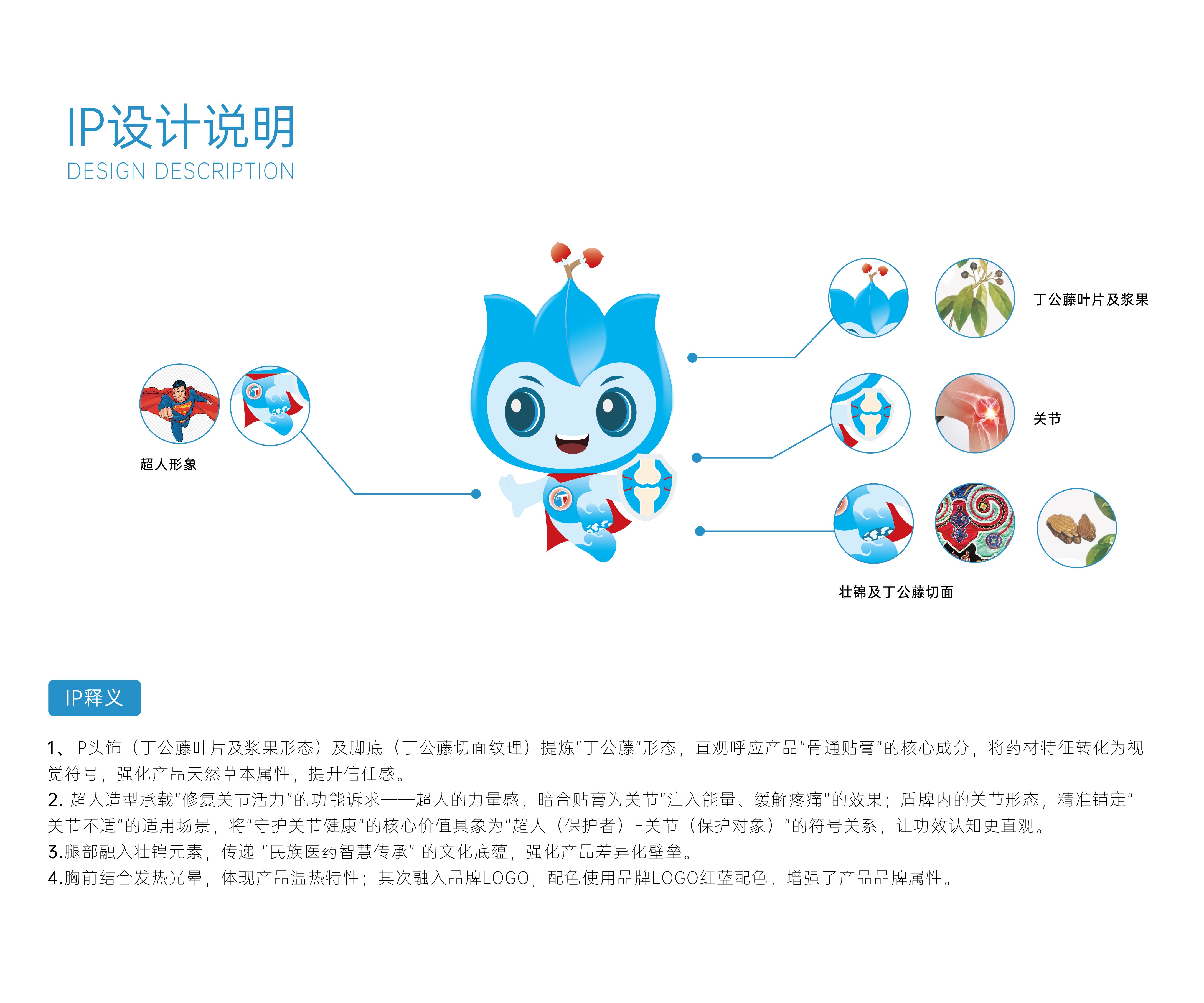 • IP世界觀構(gòu)建:賦予IP完整的背景故事——“來自壯鄉(xiāng)的丁公藤精靈,吸收天地精華與民族醫(yī)藥智慧,化身‘丁小護(hù)’守護(hù)人們的關(guān)節(jié)活力”。故事化的設(shè)定為IP注入情感與生命力,為后續(xù)內(nèi)容營銷奠定基礎(chǔ)。